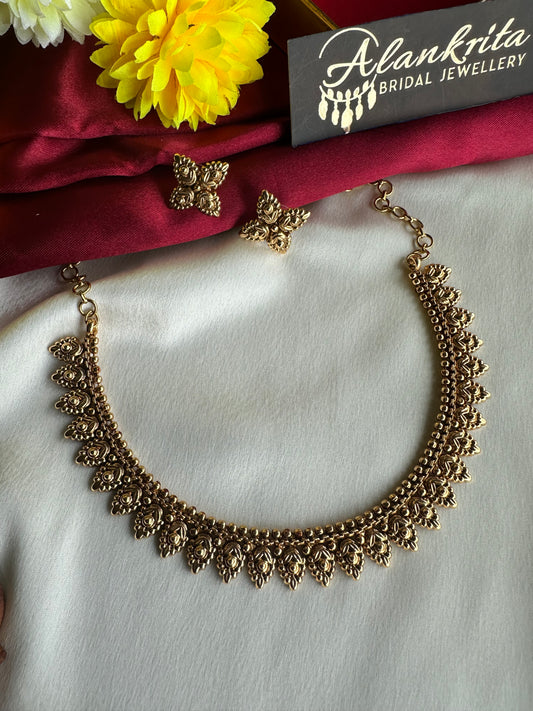 Antique Temple Short Necklace with Kemp & Pastel Green Beads