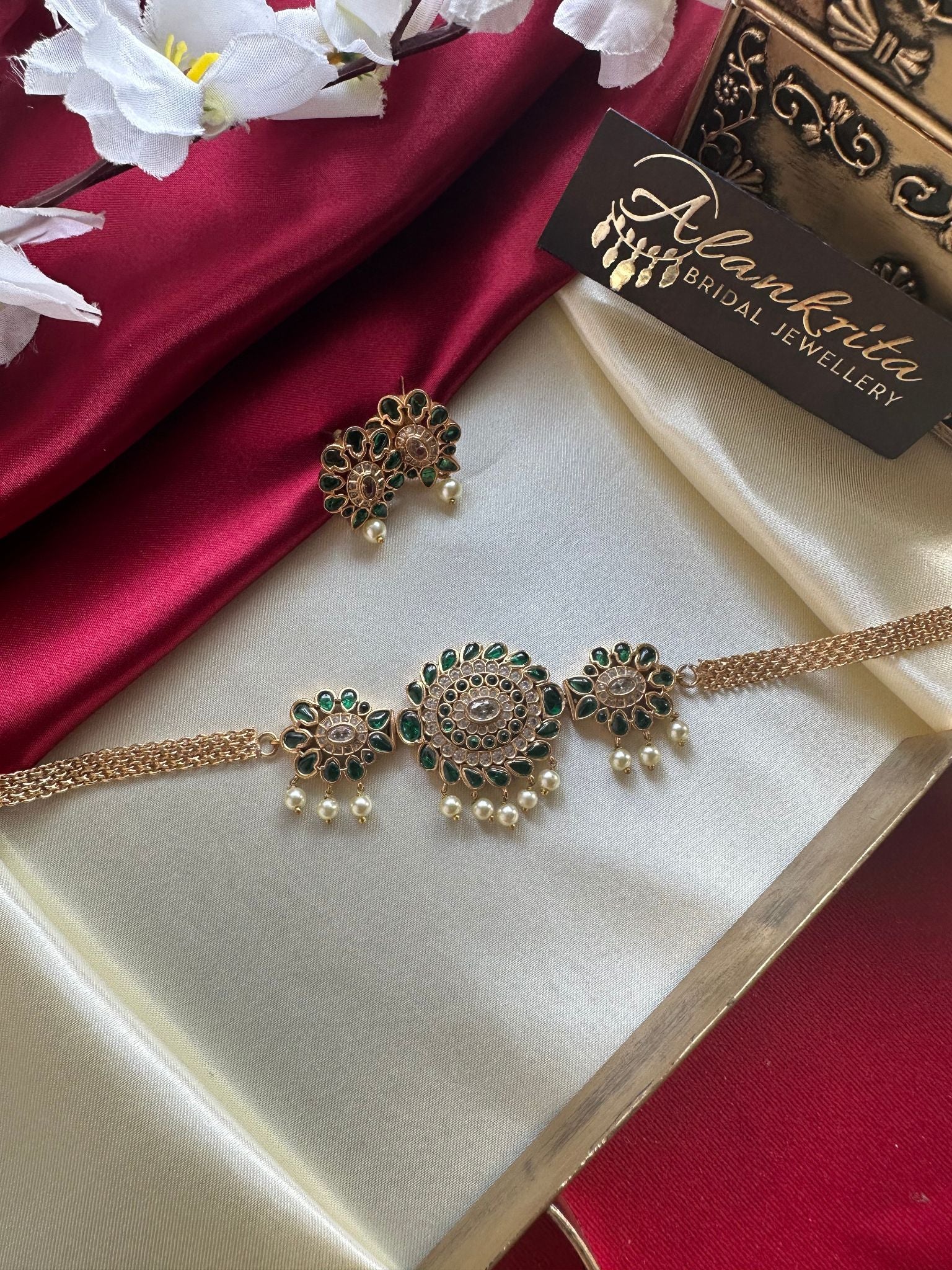 Premium Green Kemp Choker with Pearl Beads