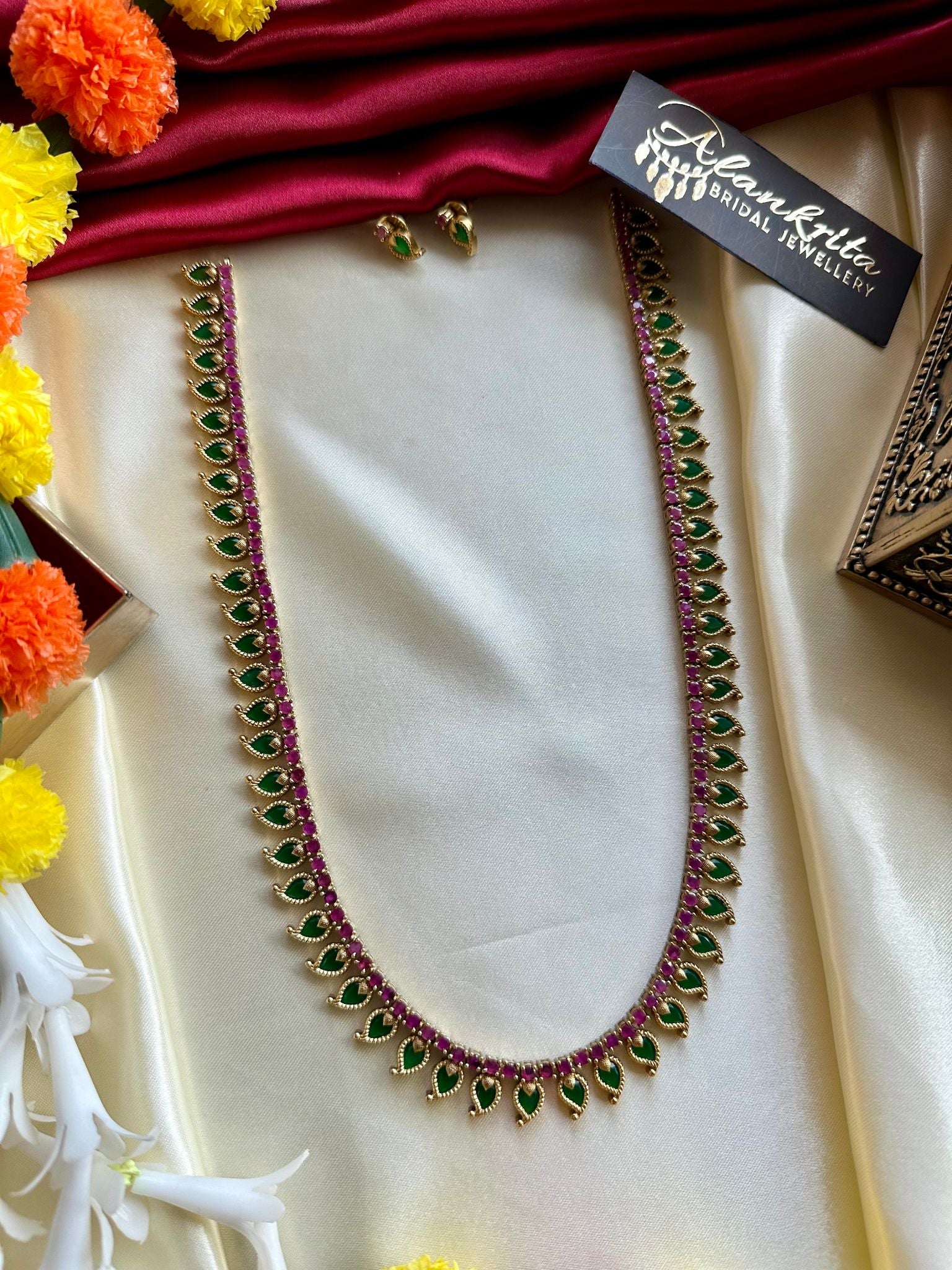Long Palakka Haram with Green & Ruby Stones