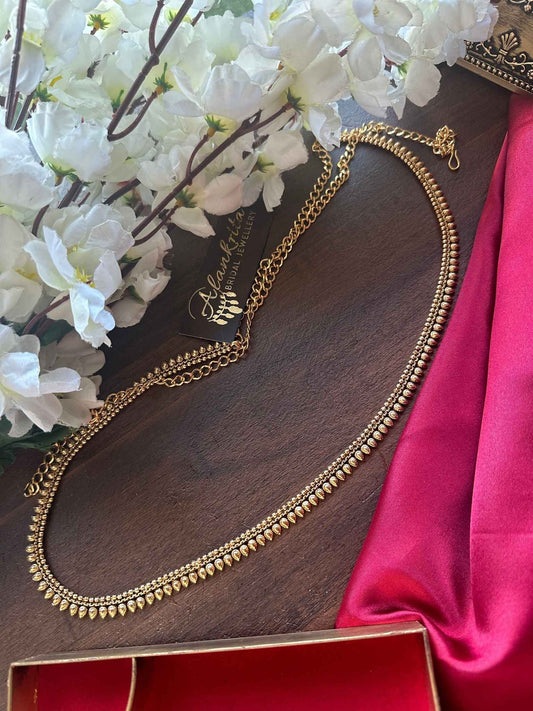 Simple Gold Look Alike Thin Hip Chain with Green Stones
